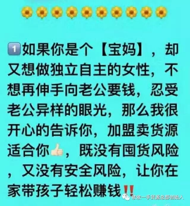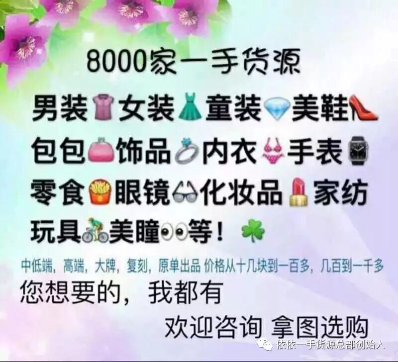 2018微商新模式,解读什么是一手货蓝海无货源网源号‼️‼️好多人不明白货源号是什么,其实很简单,你想做微商,首先你需要一个货源你才可以卖货,而我就是提供货源号的,我们的货源都来自全国各大批发档口,让你和一手货源直接联系,获得他们的微信号,做她的代蓝海无货源网理,拿最低的价格,这样你才有优势更好的招募代理,我们团队拥有全网最优势的8000多家一手货源,货源种类:男装,女装,童装,鞋包,饰品,零食,家纺,微商爆款等……都是支持免费代理,一件代发的