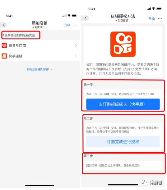 店长铺货支持一键将1688分销代发货源铺到下游店铺(如抖音,快手,拼多多,微信小商店等),1、绑定店铺流程1)点击添加店铺,选择要添加的店铺类型,点击店铺授权方法,第一步:点击下方【去订购】按钮,完成超级店长对应平台的订购。