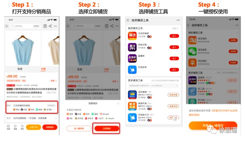 5、自动发货-供应商发货,自动触发下游小店发货,免人工操作,0耗时付费版:支持免费版倒爷货源网全部功能,铺货次数无限制四、如何使用?一)自动分销工具操作教程:图文教程:1、自动分销工具入口:①在1688登录后,选择支持代发的商品,商品详情中点击【一键铺货】。