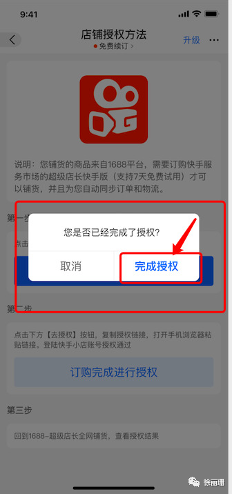 2)第二步:订购完成进行授权,最后再回到1688-店长铺货,查看授权结果,完成授权后即可选择店铺去倒爷货源网铺货。