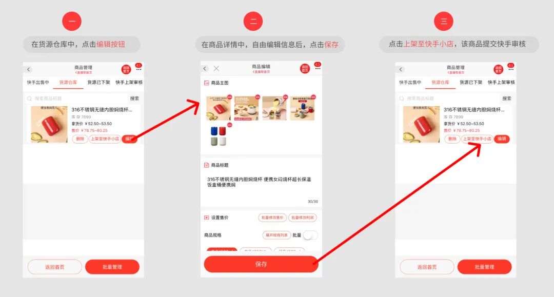 2、在“直播帮”商品管理中,编辑商品信息后,点击上架至快手小店,提交快手审核,静待几秒等待发布成功;