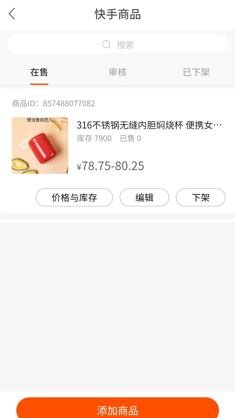 3、商品通过快手审核,出现在快手店铺-商品管理中。
