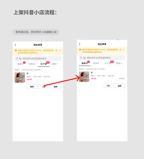 (2) 商品通过抖音审核,出现在抖音店铺-抖音商品中