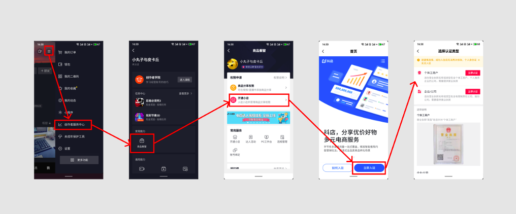 五、1688一键铺货抖音平台铺货至抖音,需开通抖音小店和抖音网红上货管家:1、完成开通抖音小店在抖音APP,“我的倒爷货源网”中找到“创作者服务中心”,再选择“商品橱窗”后开通小店,选择立即入驻,提供资质(必填)