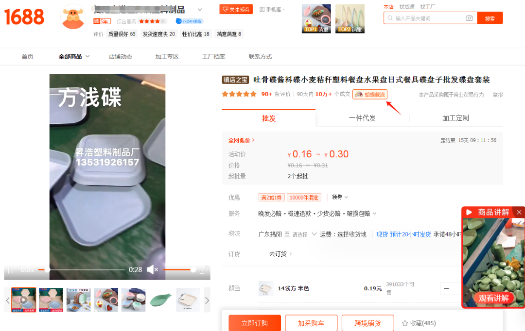 可查看商品货源主图、标题、价格、销量、标签和源链接等,点击货源链接可进入1688商品详情页。