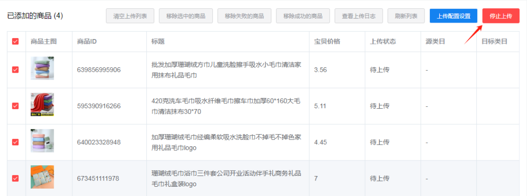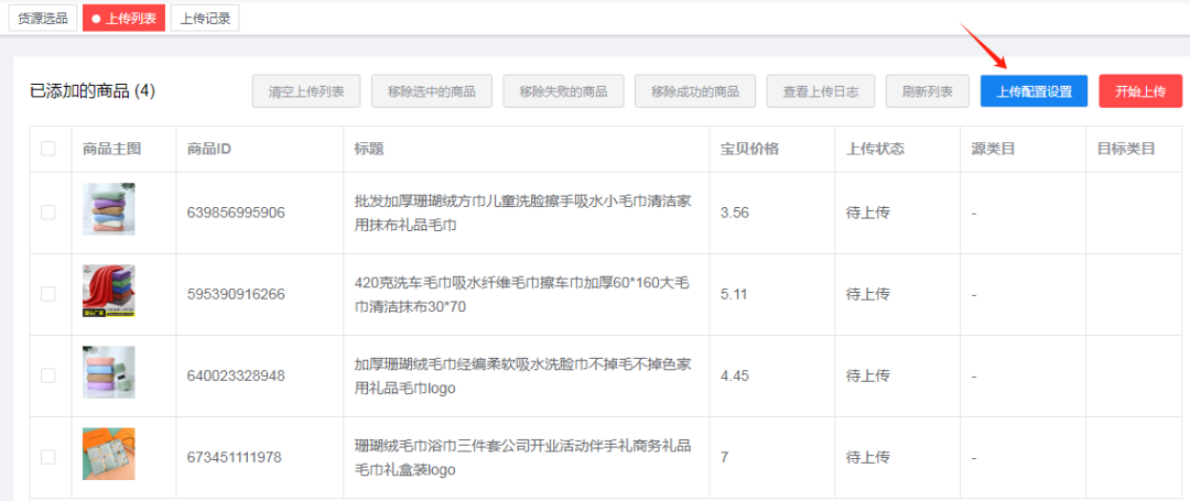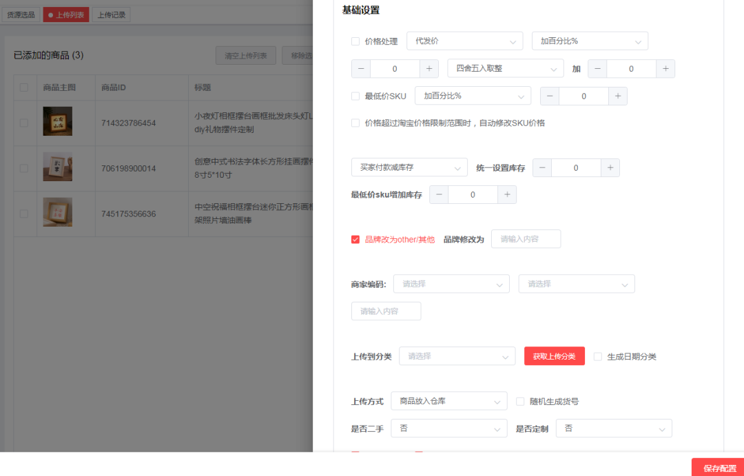 在上传列表中,可对商品的各项基础属性和图片属性进行修改和自定义设置,精细化和差异化上货。