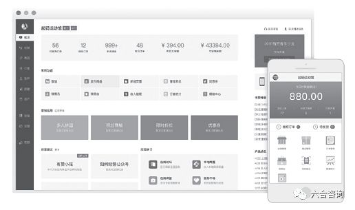 资料来源:IFenxi、六合咨询注:业务目前暂未推出公司通过核心倒爷货源网SaaS业务,提供移动电商解决方案、新零售解决方案移动电商解决方案(有赞微商城):帮助传统电商与自媒体等商家,在微信、微博等移动社交平台经营电商业务,产品包括开店工具、订单处理、支付、会员管理、营销等功能模块。