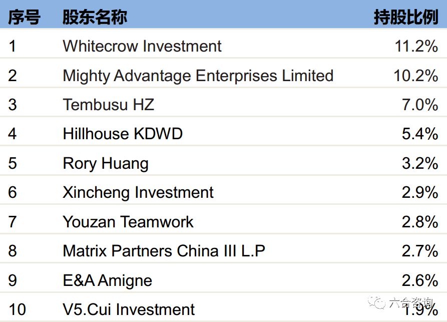 资料来源:公司公告、六合咨询注:有赞创始人白鸦持有Whitecrow Investment 100%股权